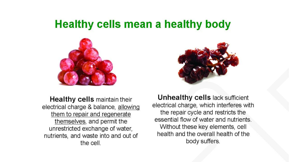 1) How well hydrated the tissues are hydrated– Hydration refers to whether or not you have enough healthy water and electrolytes in the areas surrounding the cells. The battery ‘age’ does not necessarily refer to a person’s biological age, but rather the amount of wear and tear the cells have endured. Think about your cell phone. A cell phone with a two year old battery is not going to hold a charge as long as a phone with a new battery. However, one person’s two year old battery can be much more “used and abused” than another person’s.